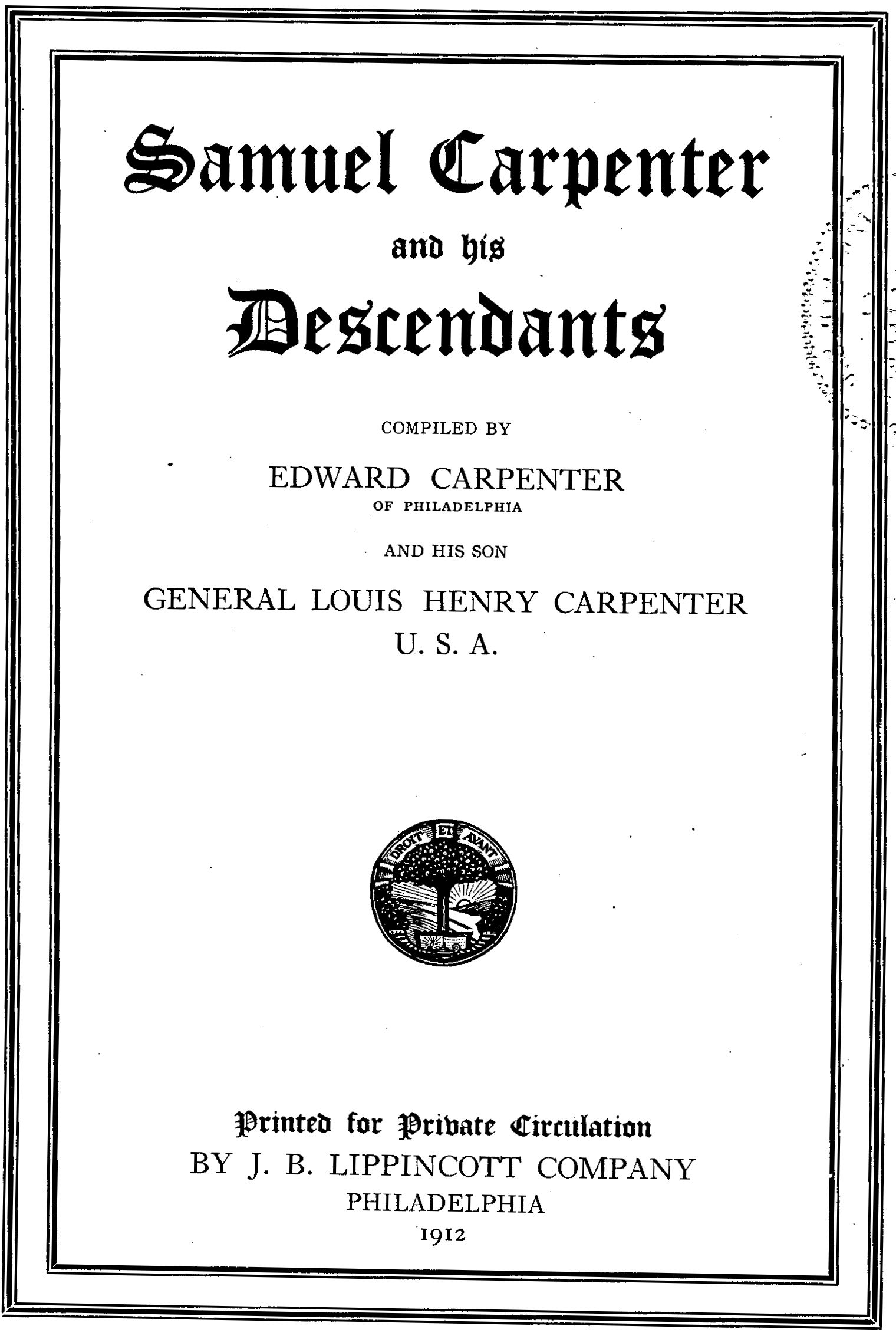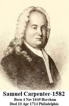Group 28 of the Carpenter Cousins Y-DNA Project is represented by the descendants of Sheriff John Carpenter, whose son Samuel Carpenter-1582 is described in the book: “SAMUEL CARPENTER AND HIS DESCENDANTS" complied by Edward Carpenter and published in 1912 by his son, Gen. Louis H. Carpenter. Samuel Carpenter-1582, the immigrant, came to Philadelphia from Barbados in 1683. He was born 4 Nov 1649 in Horsham, Sussex, England and died 10 Apr 1714 in Philadelphia, Philadelphia, PA.