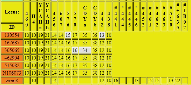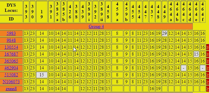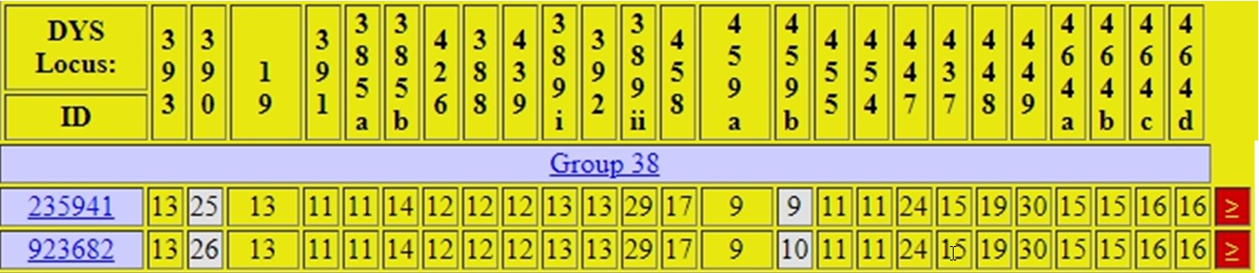 If you have noticed, there appear more than 37 Y-DNA markers tested for the majority of Group 4. Appearances in this case are a little deceiving because some DYS markers have multiple values. We are seeing something like a double hump on a camel for that specific Y-DNA marker value. Please notice some DYS values have a “i” or a “ii” or “a” or “b” or similar. For example, DYS464 has six humps or six values (a,b,c,d,e,&f) in these Group 4 tests.